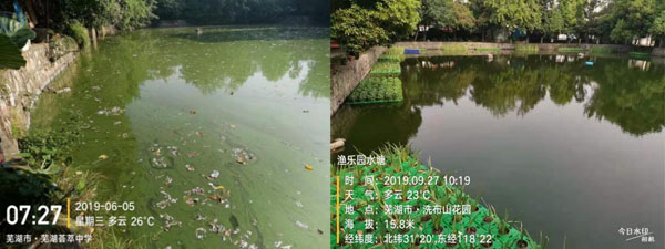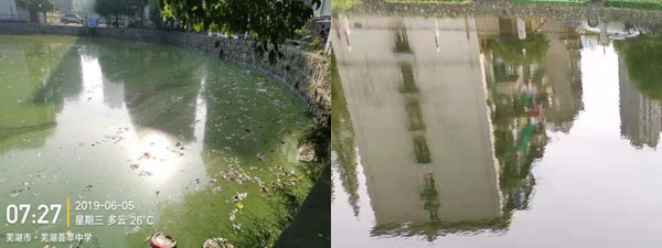 截止9月16日,蕪湖薈萃中學校內水塘治理效果如下: